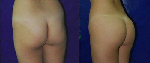 El aumento de los glúteos puede realizarse mediante la aplicación de la propia grasa de la paciente (debidamente preparada) o también mediante la colocación de implantes de silicona.